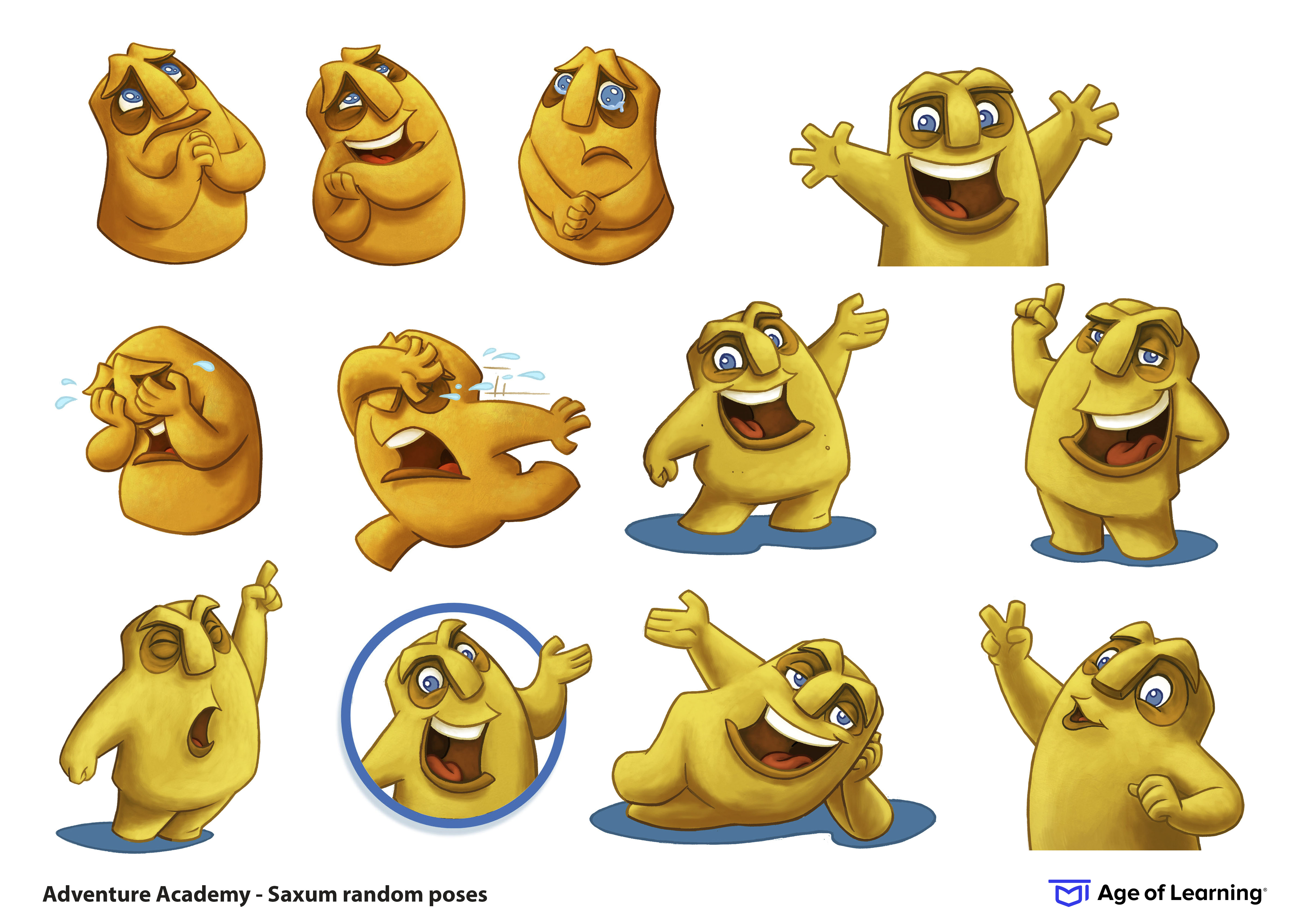 This is one of the characters I designed for "The Young Explorers Society" grammar quest that I co-created for the Age of Learnings "Adventure Academy" site. Saxum's role was to educate and instruct players in the use of proper grammar while earning XP/Coin rewards through video messages, site exploration, animation and NPC interactions.